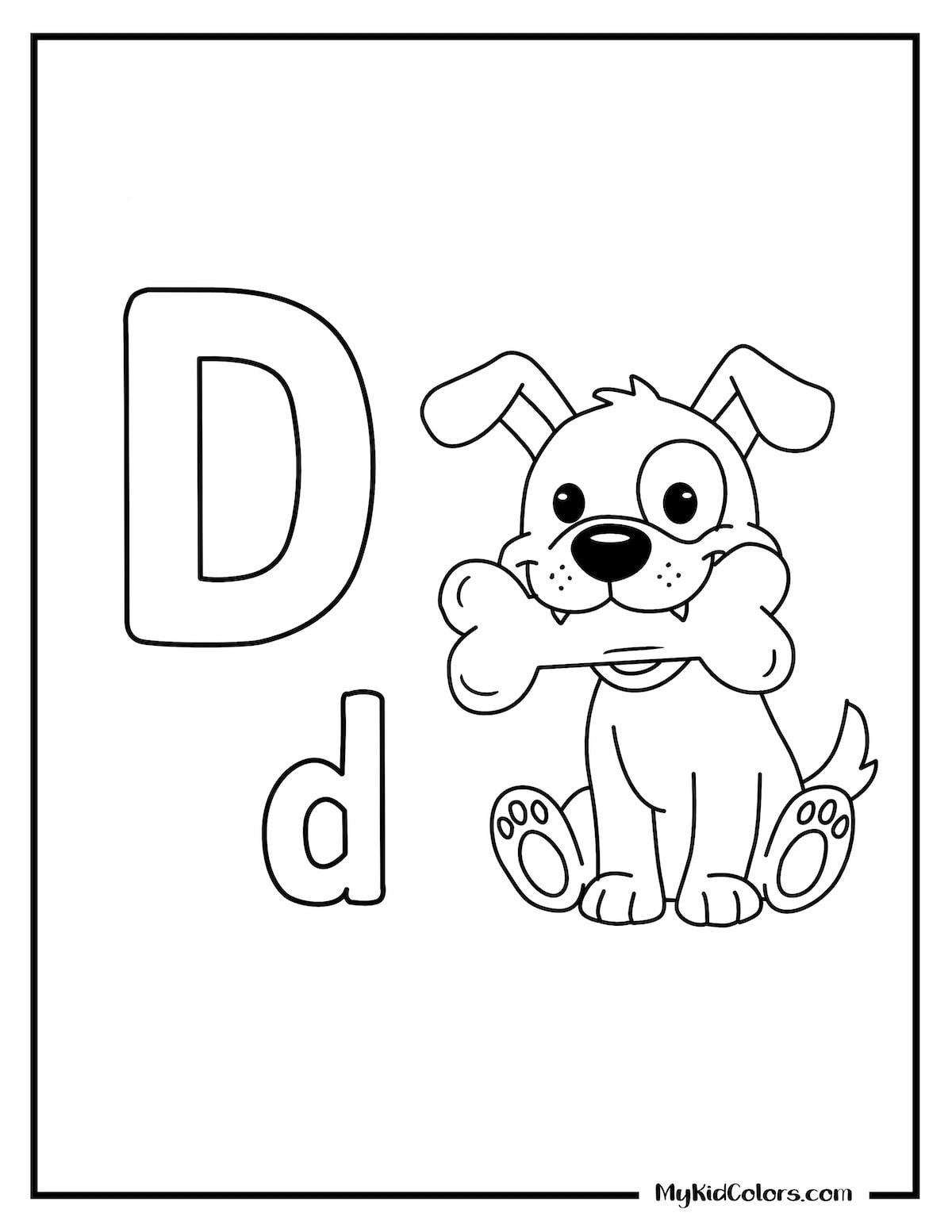 - Page 15: Uppercase and lowercase D next to a cartoon dog with a bone, a sweet option for letter i coloring pages–style focus pages (but for D!).