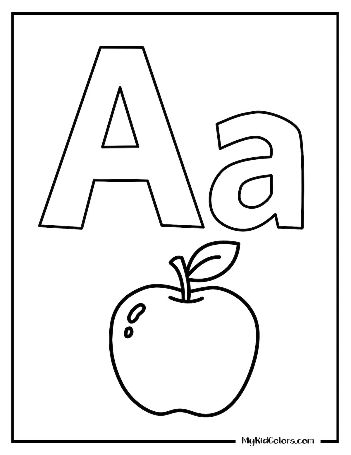 - Page 2: Uppercase and lowercase A with a smiling apple—perfect for letter a coloring pages and early letter-sound practice.