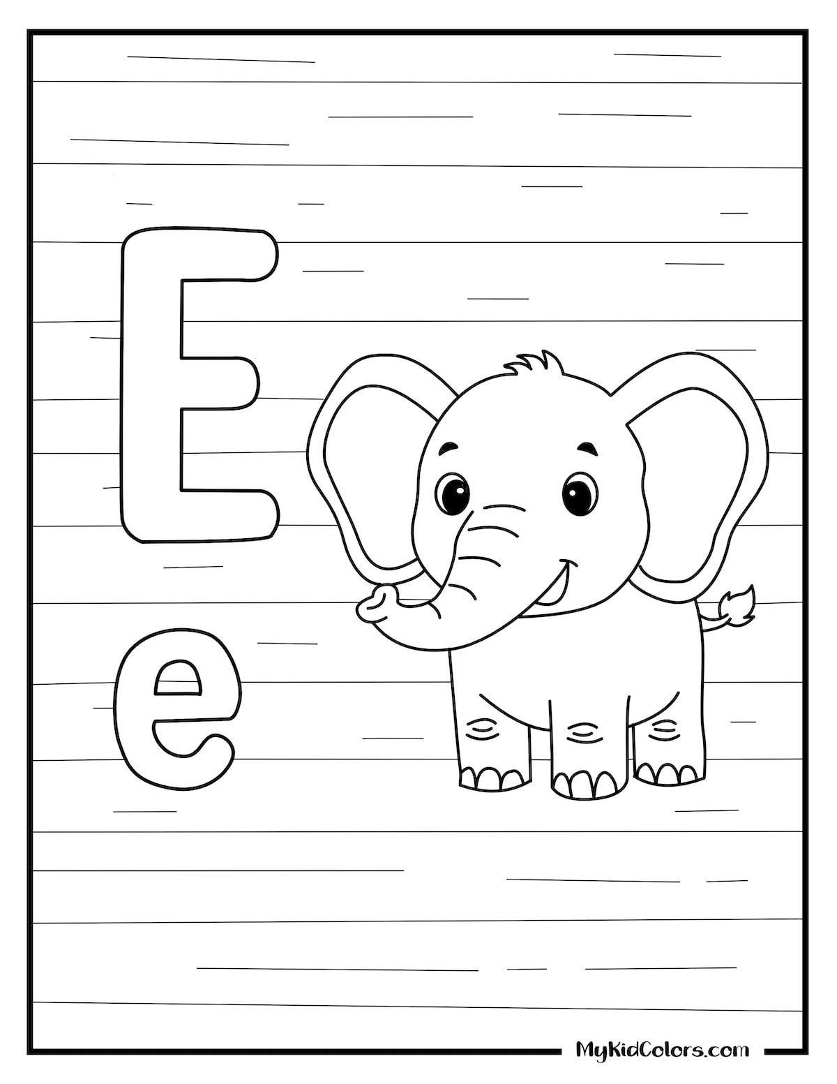 - Page 5: Clean, bold uppercase and lowercase E, a simple page that pairs well with other alphabet coloring page for children activities.
