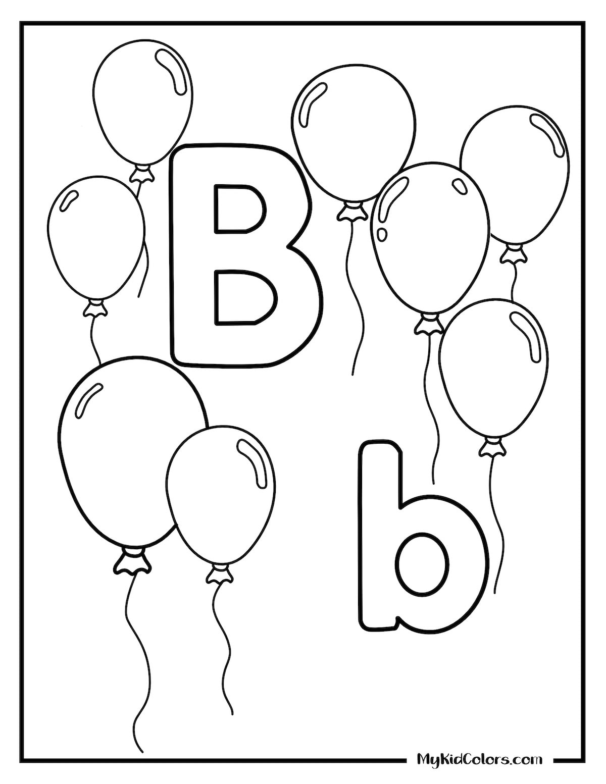 - Page 3: Big uppercase and lowercase B surrounded by festive balloons, a fun option for letter b activities for preschool free.