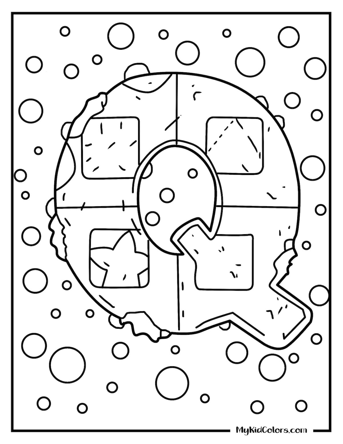 - Page 18: Q — A quilt-style Q filled with patchwork details and bubbles around it.