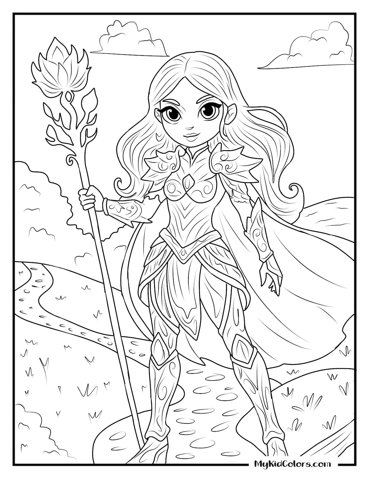 - Fantasy world background – Towering trees, castles, and distant mountains.