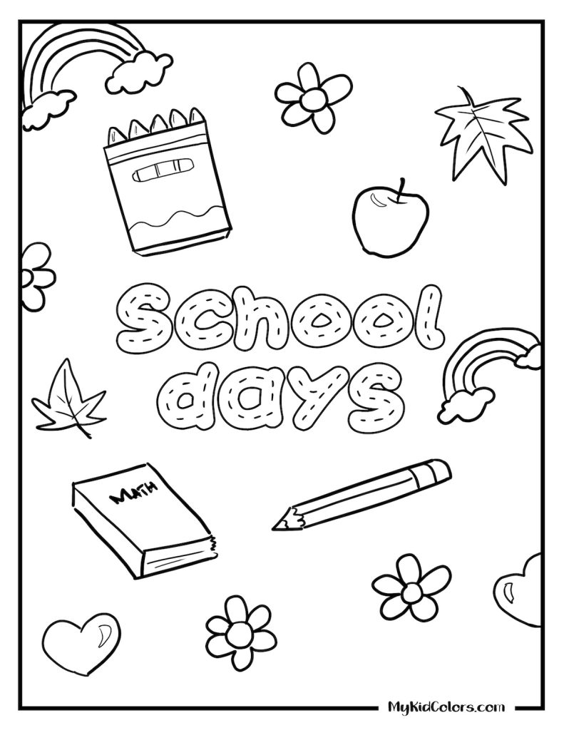 These school coloring pages also work great as classroom activities, first day of school activities, and free activities for kids who love cool designs and personal expression.