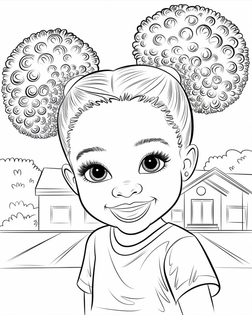 Each coloring page is designed to reflect the beauty of Black and Brown children, their hairstyles, and their everyday experiences. Just click to download your favorites.