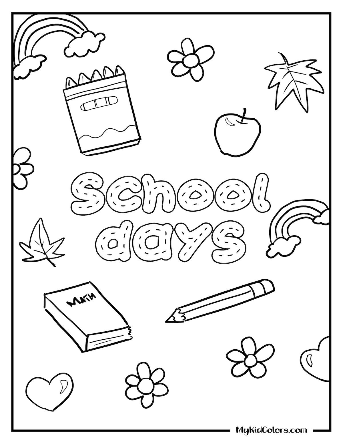 These school coloring pages also work great as classroom activities, first day of school activities, and free activities for kids who love cool designs and personal expression.