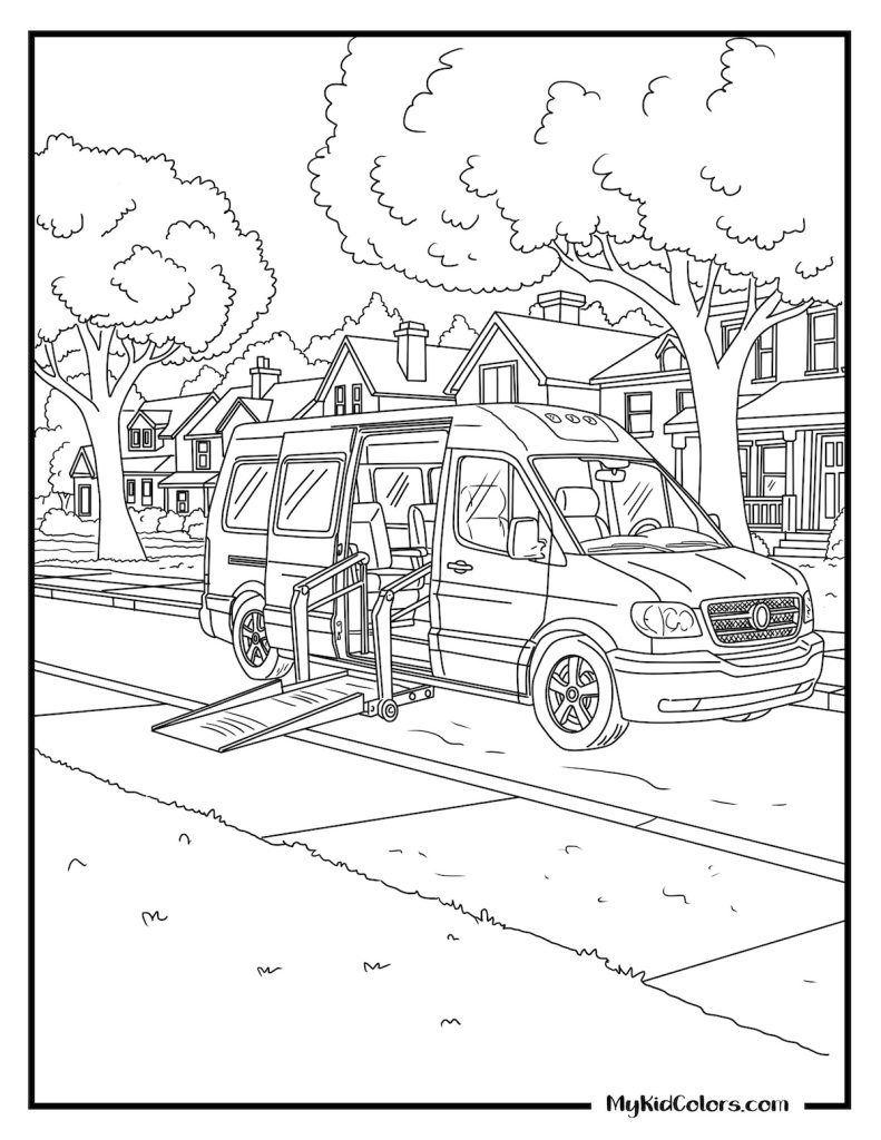 - For the “Accessible Van” Page (Page 10): “Do you see the ramp coming out of the side? That helps people who use wheelchairs travel comfortably. Isn’t that a cool invention?”