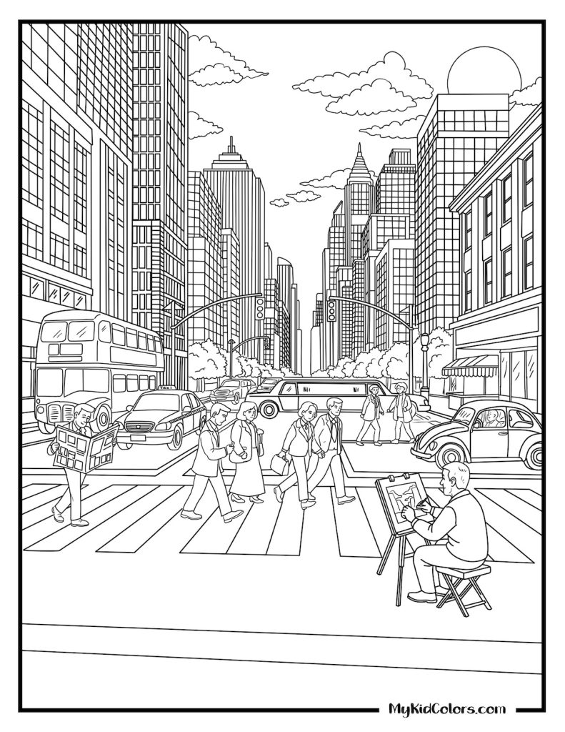 Designed for older kids (6+) or quiet time. These scenes are packed with details like busy streets and landscapes to help build patience and focus.
