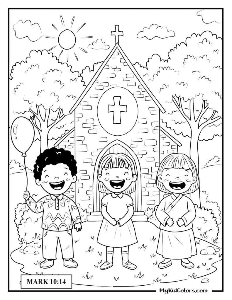 Church coloring pages are printable Christian activity sheets that feature Bible verses, worship themes, and church scenes so kids can learn Scripture while they color at home, in Sunday school, or during homeschool.