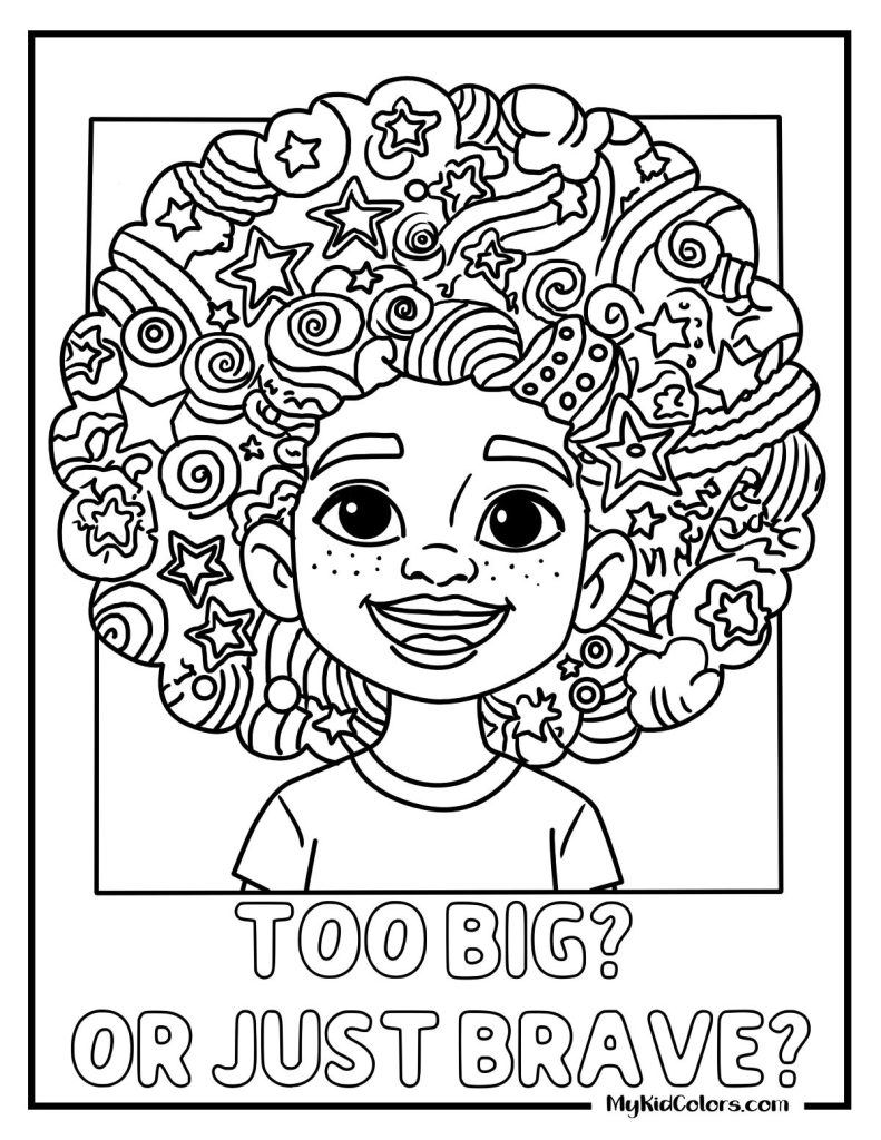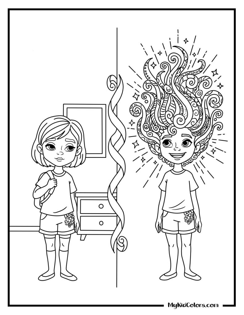 Perfect for elementary kids. These pages highlight imagination, diversity, and storytelling through hair.