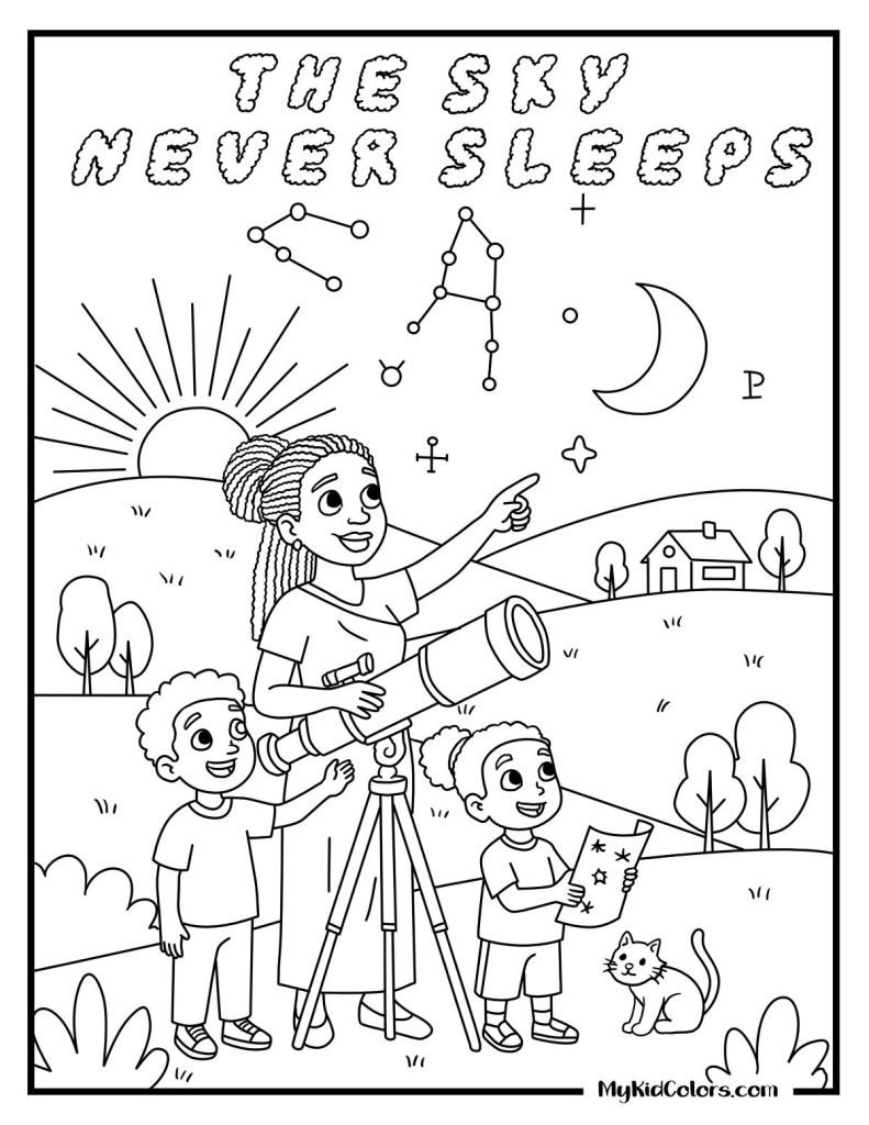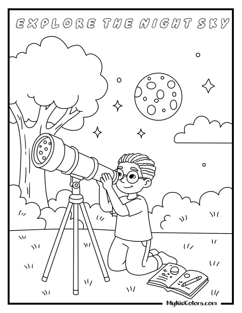 - Sky Observation Journal: Pair coloring with real-life observation, encouraging kids to draw what they see in the sky during the day and at night.