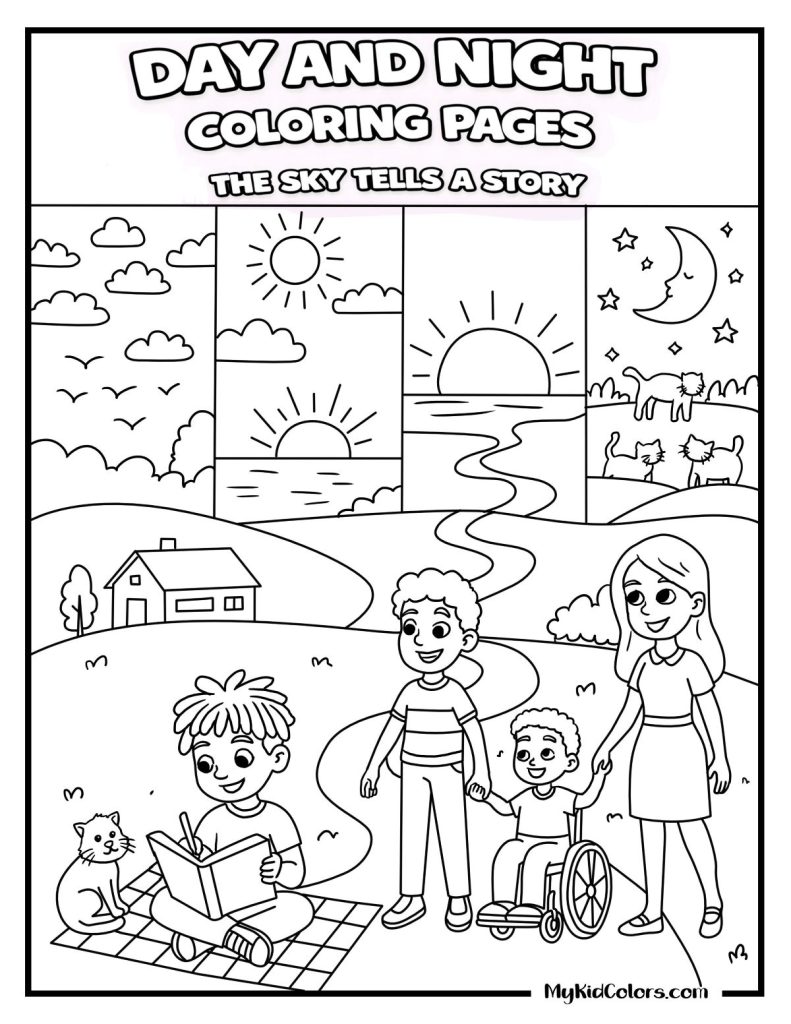 15 Free Day and Night Coloring Pages for Real Life Routines (PDF)