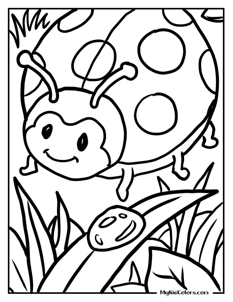 • Page 1: The Giant Ladybug: A bold, easy coloring sheet with large spaces that helps toddlers build confidence while developing fine motor skills through simple, engaging shapes