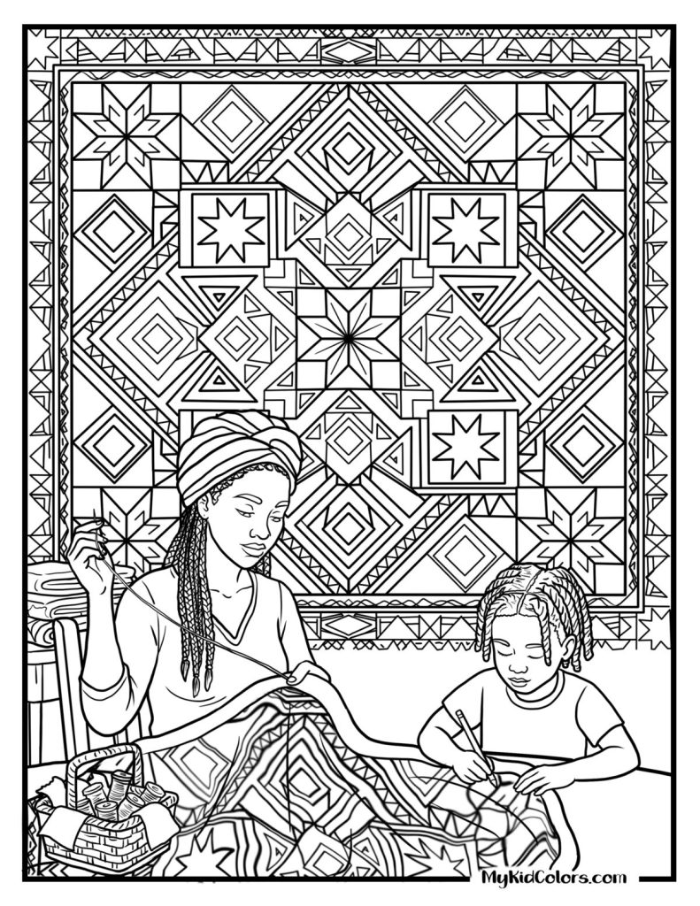 - For “Geometric Cultural Quilt Pattern” (Page 12): โWhat patterns, colors, or designs remind you of our family, culture, or something special to you?โ