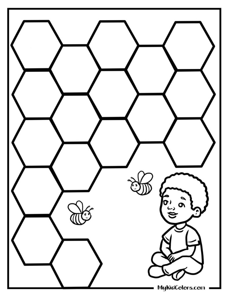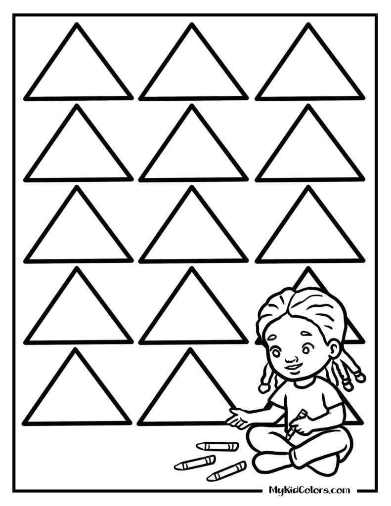 Start with simple shapes like triangles and circles, then ask kids to spot patterns, count sides, or create their own designs. Pages like the triangle grid or honeycomb pattern naturally introduce math concepts through play.