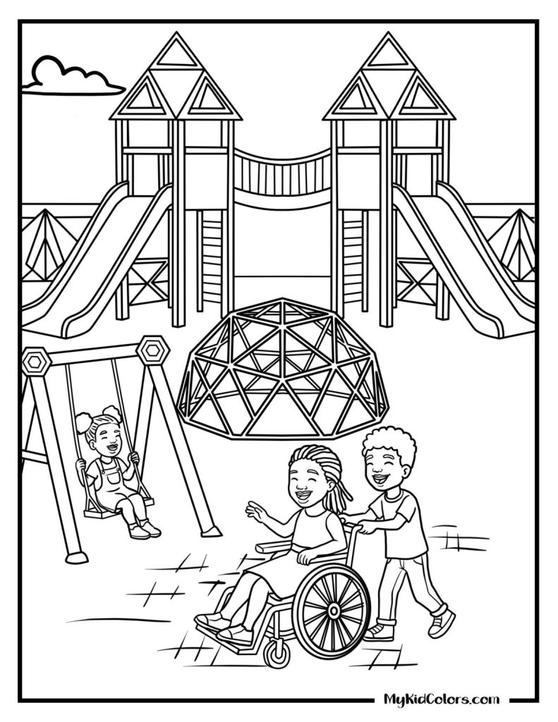 The Inclusive Family Coloring Collection includes 25 human-drawn illustrations centered on everyday moments โ designed to make inclusion feel normal, joyful, and intentional.