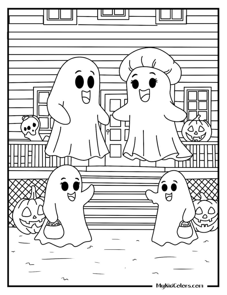 For families who skip the truly scary side of Halloween, these pages land in the happy middle: spooky and sweet.