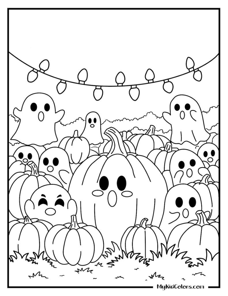 - Pumpkin patch ghosts — a family of ghosts having fun among pumpkins.