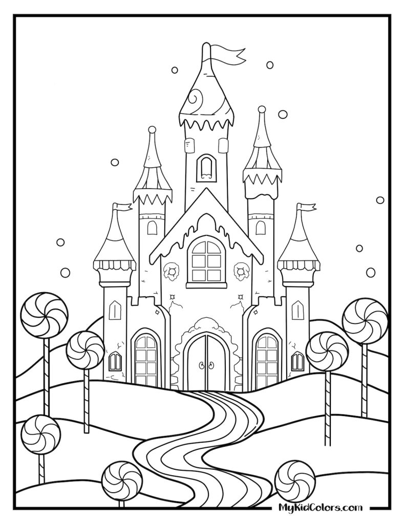 They’re a fun, screen-free way for families and classrooms to celebrate the holiday season. The pages range from easy gingerbread house drawings with big outlines to complex candy castle templates that older kids and adults can enjoy.