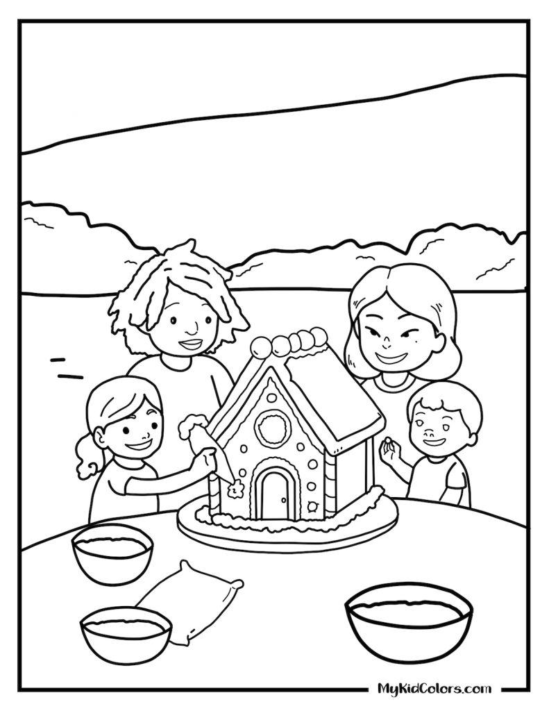 - Gingerbread Family Portrait: Color each house to represent a family member’s “dream home.”