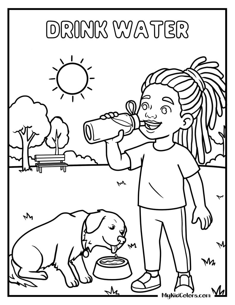 - Pages 9 & 10: Drinking water and enjoying fresh air reinforce simple but powerful habits children can practice daily to build strong bodies and healthy routines.