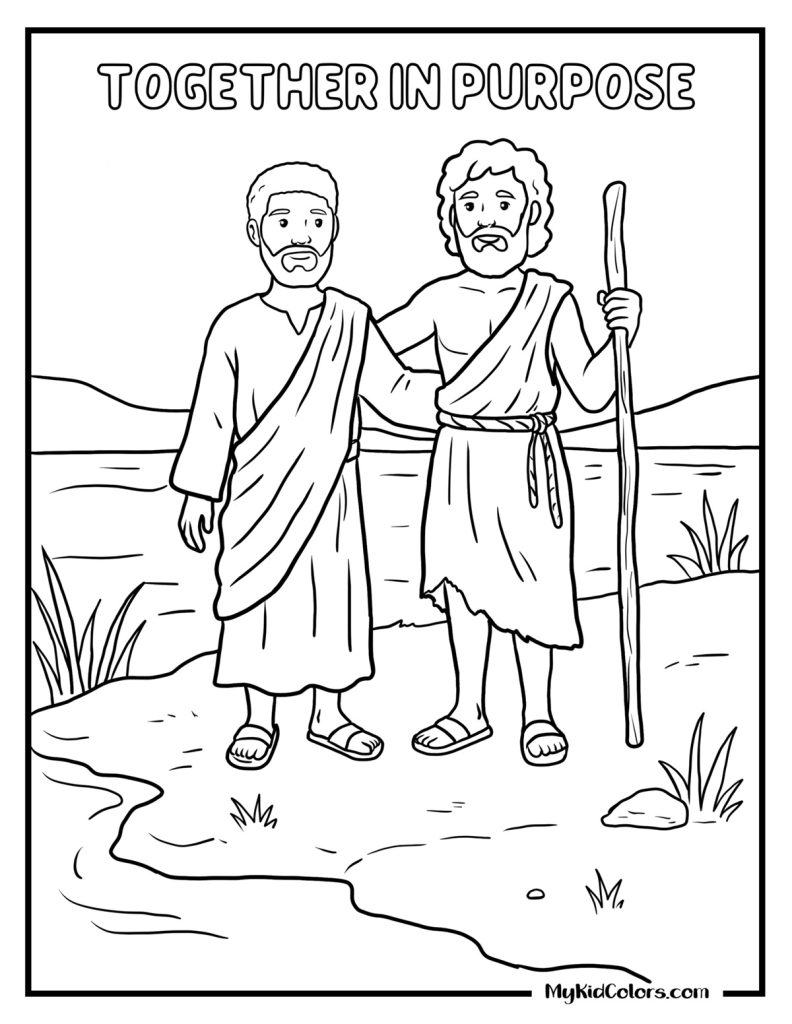 - For “Together in Purpose” (Page 7):ย “John and Jesus worked together at the river. Who is a friend or family member that helps you do good things for others?”