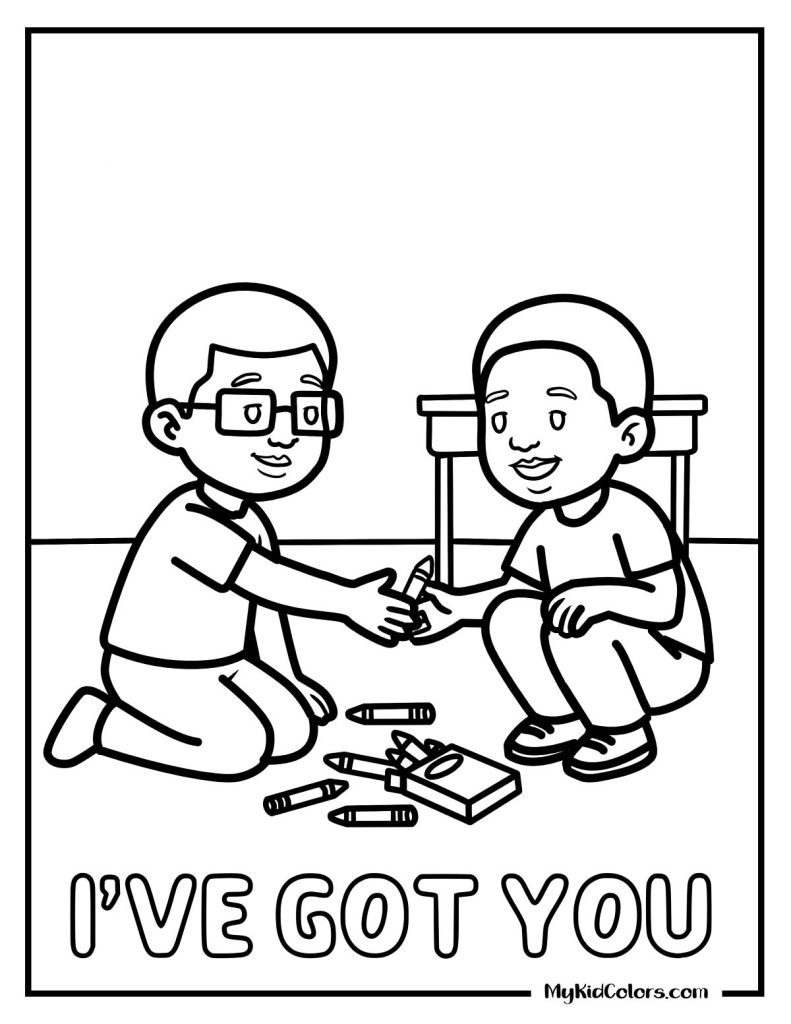 Perfect for elementary kids. These kindness coloring sheets show real-life situations that build confidence and social awareness.