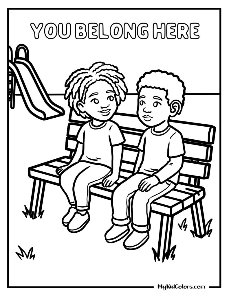 Best for toddlers and preschoolers. These kindness coloring pages for preschoolers focus on emotional safety, simple actions, and early empathy.