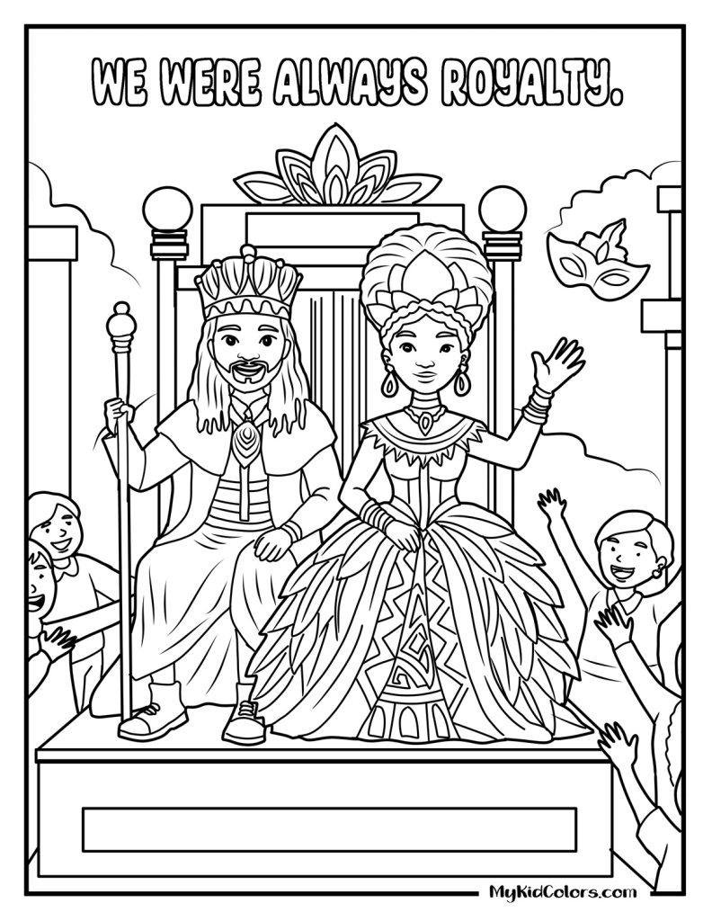 3. For “Regal Black Royalty” (Page 14):ย “The quote says ‘We were always royalty.’ This king and queen look so proud and happy. What do you think makes someone a true king or queen on the inside?”
