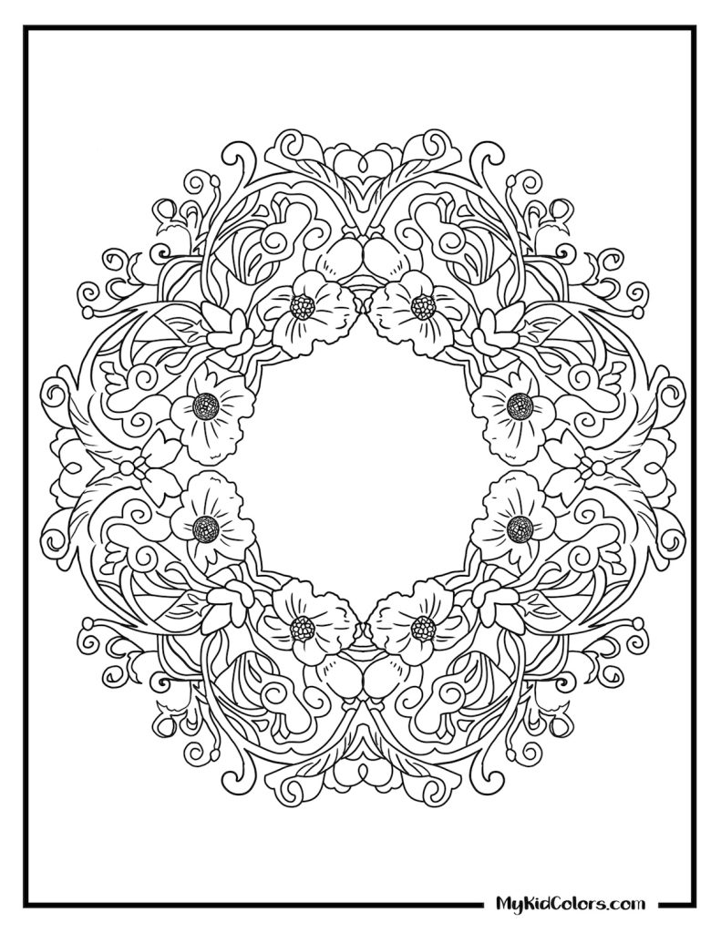 - Mandala-style poppy wreath with detailed petals and leaf accents.
