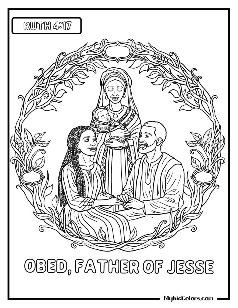 Absolutely. Pages 11–14 are detailed enough for Christian coloring pages for adults or Ruth Bible journaling. The lineage page (Page 13) is especially powerful for teaching generational impact.