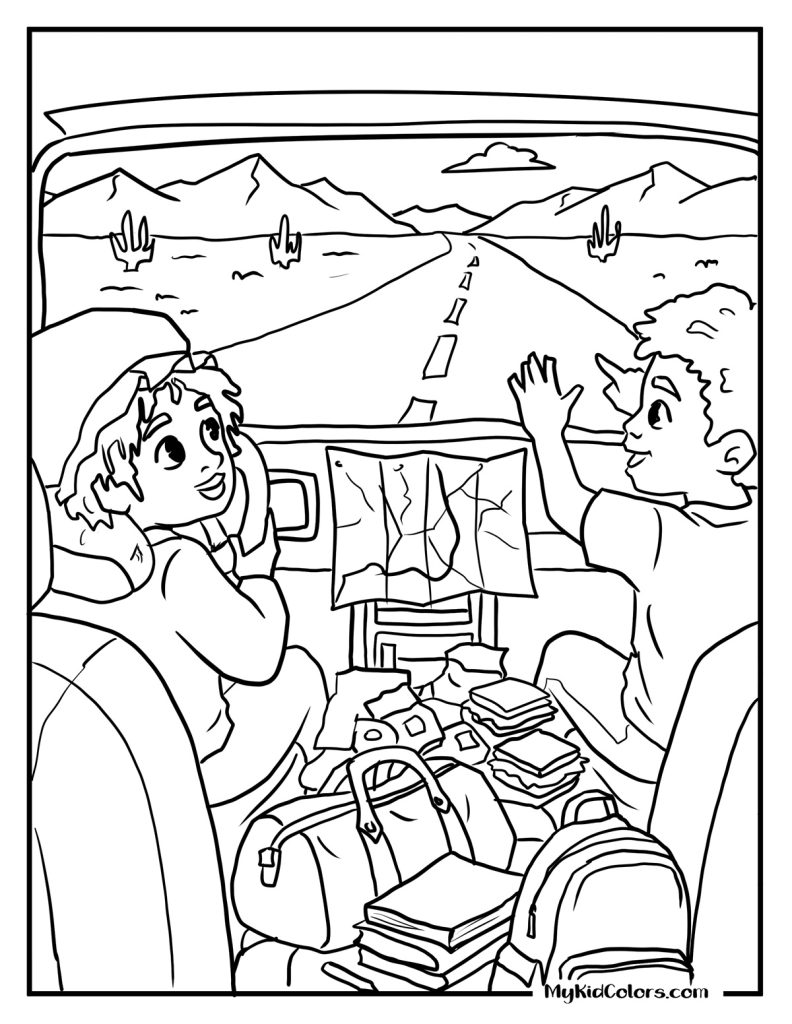 - The Road Trip Travel Journal: Print out Page 12 (Road Trip Realness). Have your kids color it, then staple a few blank pages behind it. Have them use it as a travel journal to draw what they see out the window during your own spring break drives!
