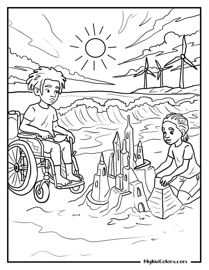 The Inclusive Family Coloring Collection includes 25 human-drawn illustrations centered on everyday moments — designed to make inclusion feel normal, joyful, and intentional.