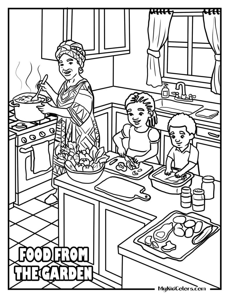 - Pages 14 & 15: A cultural cooking celebration and a full garden panorama bring everything together, reinforcing healthy food habits and making them ideal as meaningful healthy food coloring pages for reflection and connection.