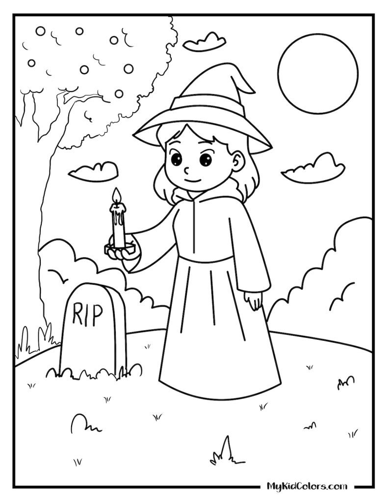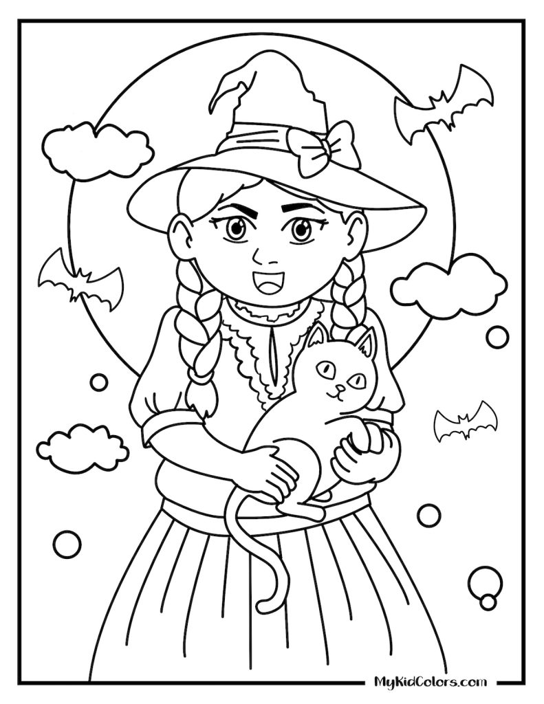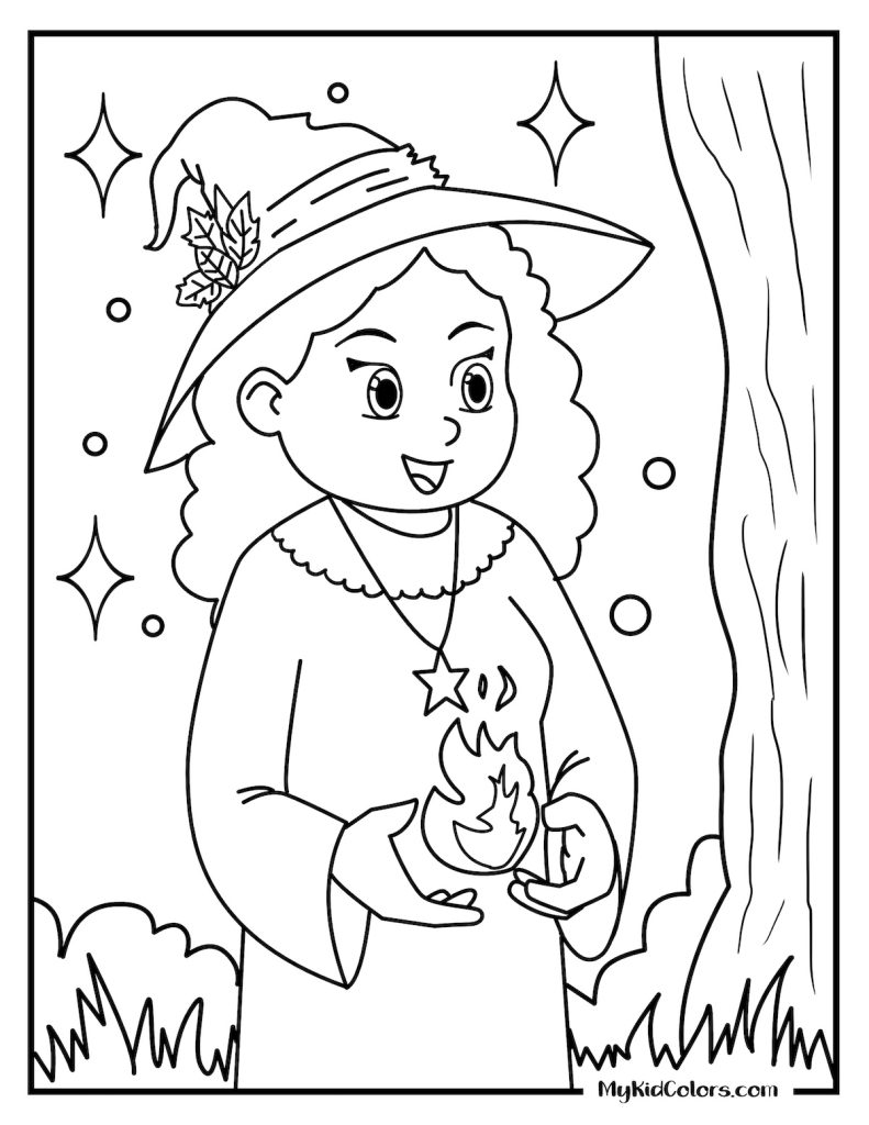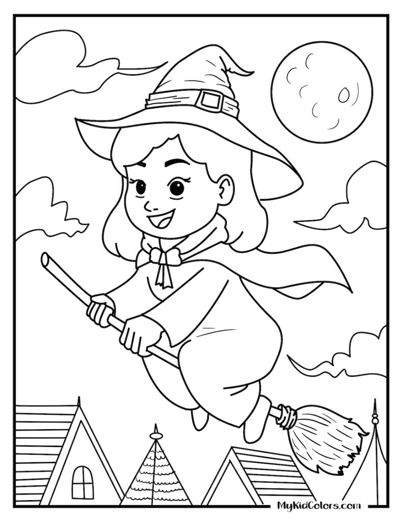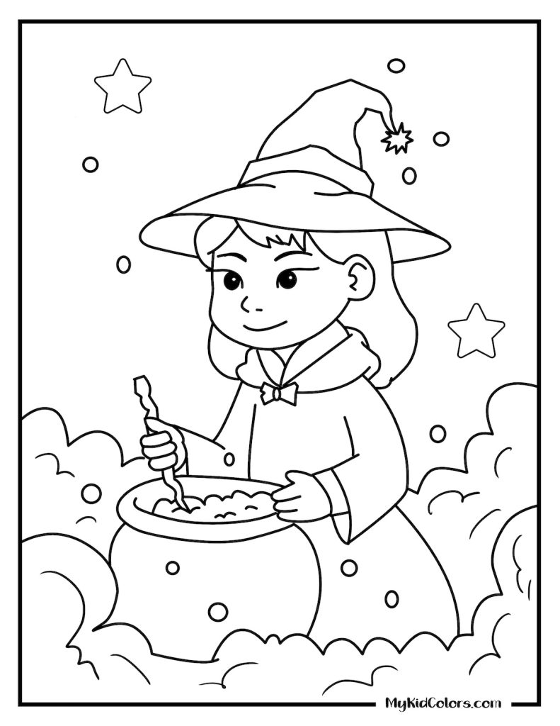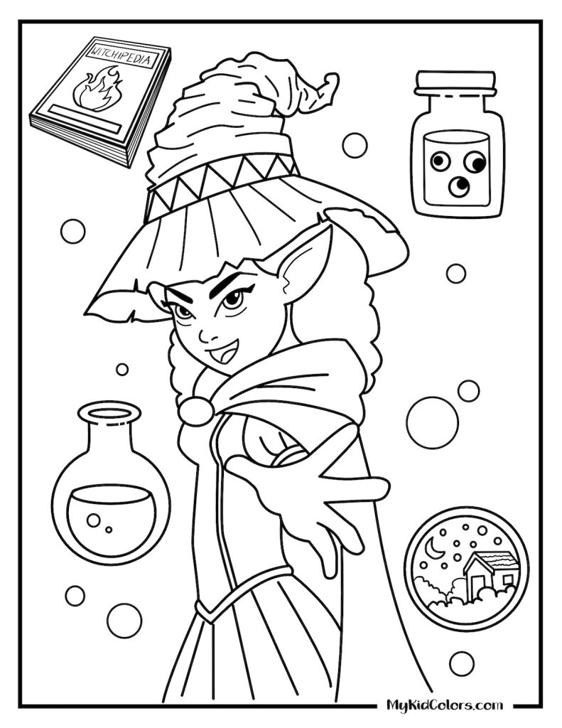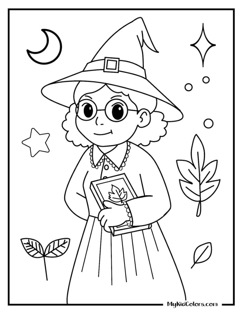 • Witchy colouring pages free printable for kids who enjoy whimsical characters and playful Halloween fun.